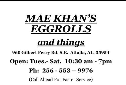 Welcome to Mae Khan's Eggrolls and Things, a hidden gem nestled at 960 Gilbert Ferry Rd SE, Gadsden, AL. This restaurant has quickly cemented itself in the hearts—and stomachs—of locals and visitors alike. With a philosophy centered around freshness and quality, Mae Khan's serves up dishes made to order that are sure to delight.